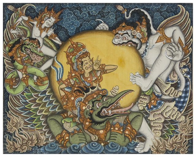 “Wayang painting,” Madra once said, “tells stories that are part of Balinese culture. All these gods and heroes and villains and servants are intensely familiar to us. How they look, the style in which they are drawn – all mirrors the shadow theater. Making decisions about showing characters’ motivations before I start to draw are often harder than the act of painting.”