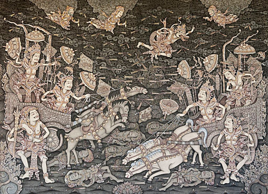 Arjuna and Kresna in Battle with Karna and Salya, Ketut Madra, 2013. Jakarta collection