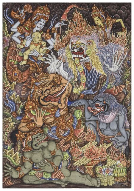25. Siwa, Gana and Giri Putri / Tenung Gana, Ketut Madra, Peliatan, Acrylic on canvas, 1973, 45 x 65 cm, Collection of Ian Caldwell