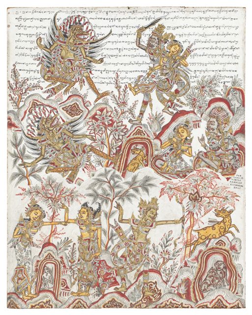 29. Abduction of Sita, Pan Semari, Kamasan, 1973, Traditional colors and gold leaf on hardboard, 58 x 70 cm, Collection of Museum Puri Lukisan, Ubud