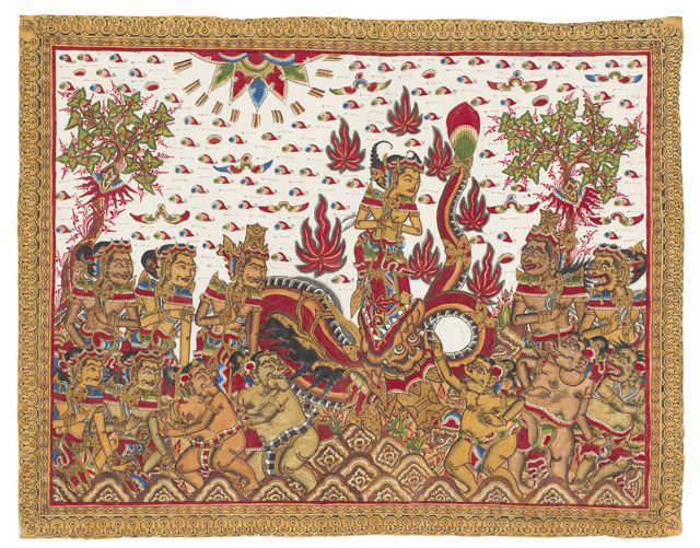 48. Sutasoma and Kala, Ni Made Suciarmi, Kamasan, Traditional colors on cotton cloth, 1973, 86.5 x 66.5 cm, Collection of David Irons