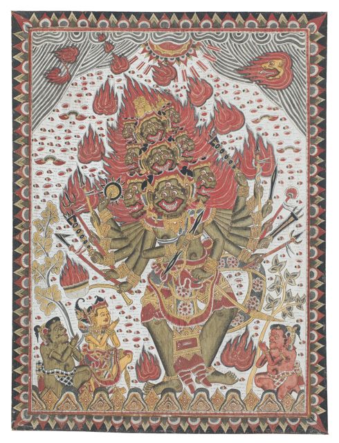 43. Pamurtian Kresna and Salya, Mangku Mura, Kamasan, Traditional paints on wood, 1973, 75 x 100, Collection of the family of Mangku Muriati
